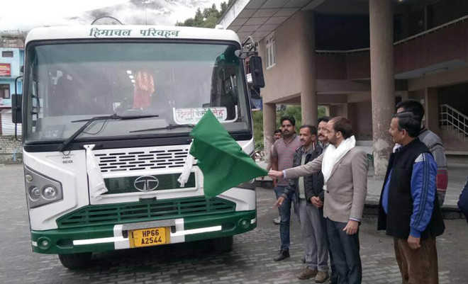 Sub Divisional Magistrate Sunny Sharma flagged off the bus service from Keylong.HRTC Regional Manager, Keylong, Mangal Menapa said with the start of the bus service, tourists would be able to enjoy journey via Manali to Leh in Rs 1,380.