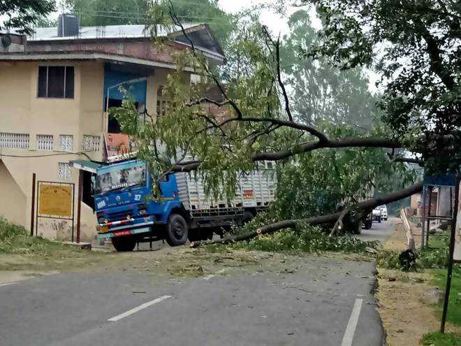 The power supply in these areas remained suspended for hours because of the damage to power conductors.Recently, two occupants of a car on their way to Palampur had a narrow escape when a tree fell on the car near HP Agriculture University, resulting in injuries.In another accident, a youth riding a bike lost his life when a tree hit him on the highway last month.